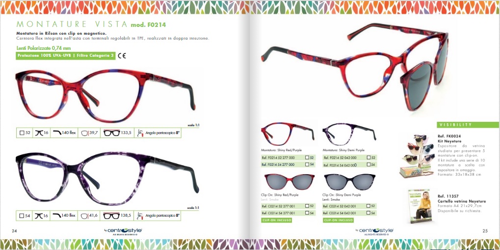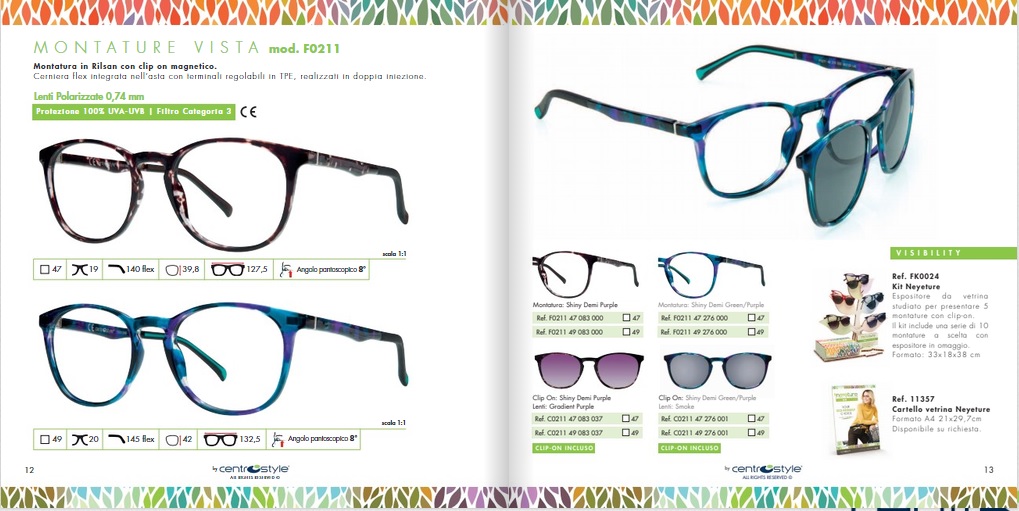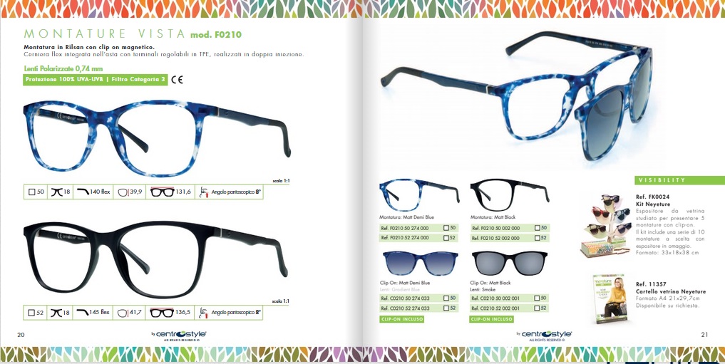 Collezione NEYETURE: innovativo materiale BIOBASED, leggero, robusto. Tutti i modelli sono corredati di CLIP ON MAGNETICO. Montature con lenti neutre BLU LIGHT FILTER & CLIP-ON da sole. (filtro protezione rtetro-illuminazione blu-viola nociva dei monitor). La confezione COMPOSTABILE, comprende la MICROFIBRA e L’ASTUCCIO in materiale ECOCOMPATIBILE, fanno da corredo a questa linea dall’animo GREEN .