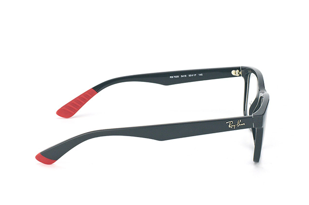 Ray-Ban 7025. Montatura uomo col.5418 nero, di forma rettangolare in celluloide con terminali interni in gomma rossi.
